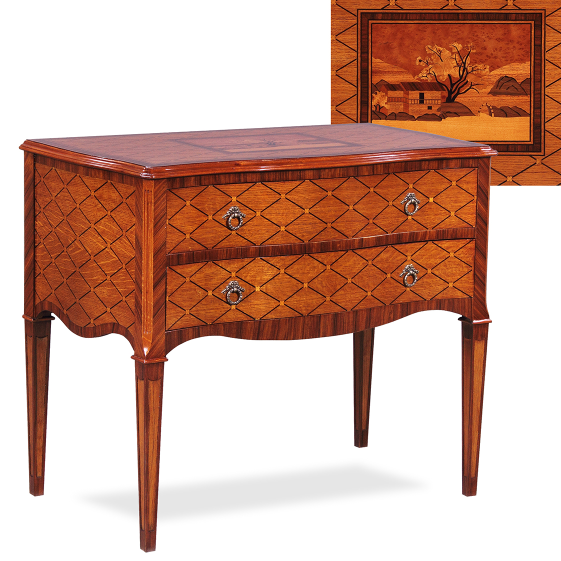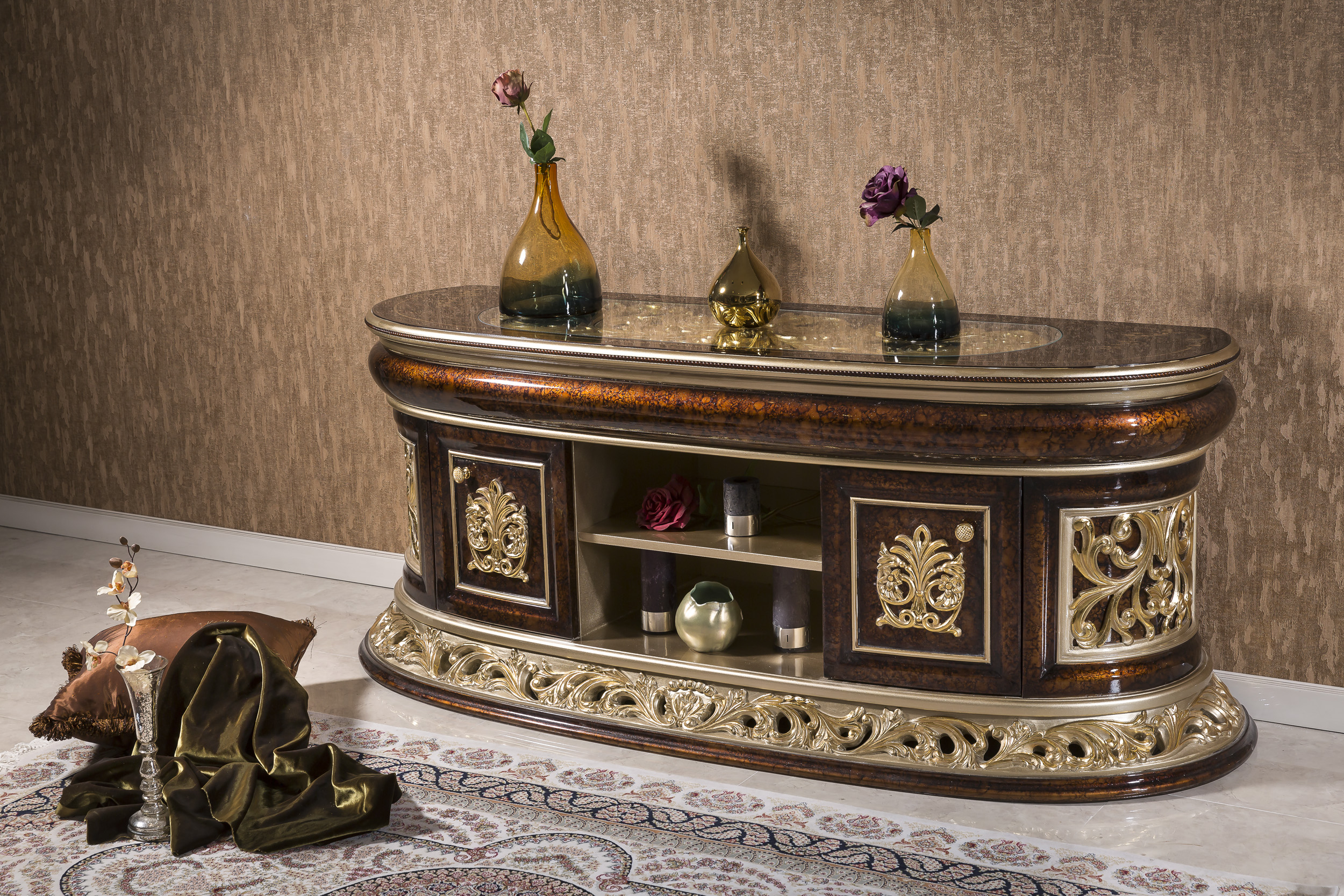 Чаще всего рассматриваемая мебель создается из древесины, а также стекла и хрусталя. Применяются и ценные металлы. Для обивки выбираются дорогие ткани: атлас, бархат, натуральная кожа. Большинство из представленных моделей выпускаются мелкосерийным производством.